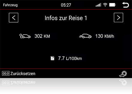 Οι πληροφορίες οδήγησης εμφανίζονται στην οθόνη Dynavin 8 Platform. Έτσι, εξακολουθείτε να βλέπετε την κατανάλωση καυσίμου, την απόσταση από το άδειασμα, την εξωτερική θερμοκρασία και πολλά άλλα |